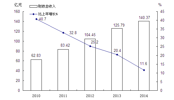 图3 2010-2014年公共财政总收入(不含基金收入)及其增长速度